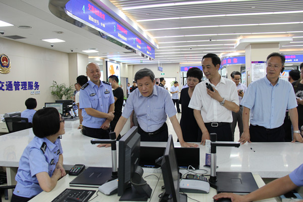 6月21日下午,省政协副主席孙景淼一行到我市行政服务中心调研“最多跑一次”改革落实情况。调研组在市行政服务中心详细了解了“一窗受理、集成服务”改革推进情况和“无差别全科受理”模式,体验了24小时自助服务和“一证通办”系统。市政协主席陈瑞商,市委常务、常务副市长林亮,市政协副主席计勇强等陪同调研。